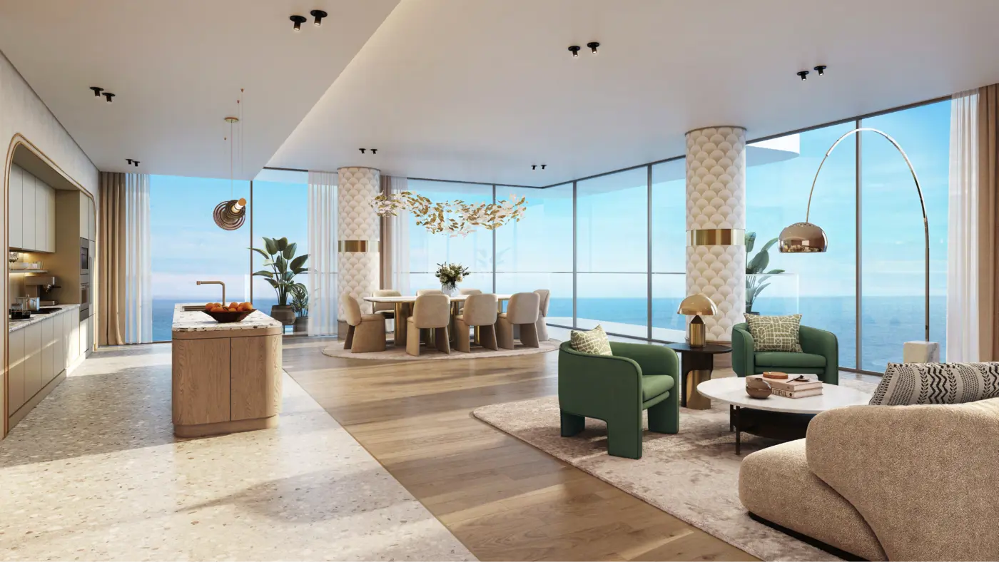 With its striking sculptural design, Sensia brings together contemporary aesthetics and timeless Art Deco inspiration. From flowing balconies to angled terraces, each residence has been purposefully designed to capture panoramic views of the Arabian Gulf and Dubai skyline, blending artful architecture with the natural rhythm of the sea.